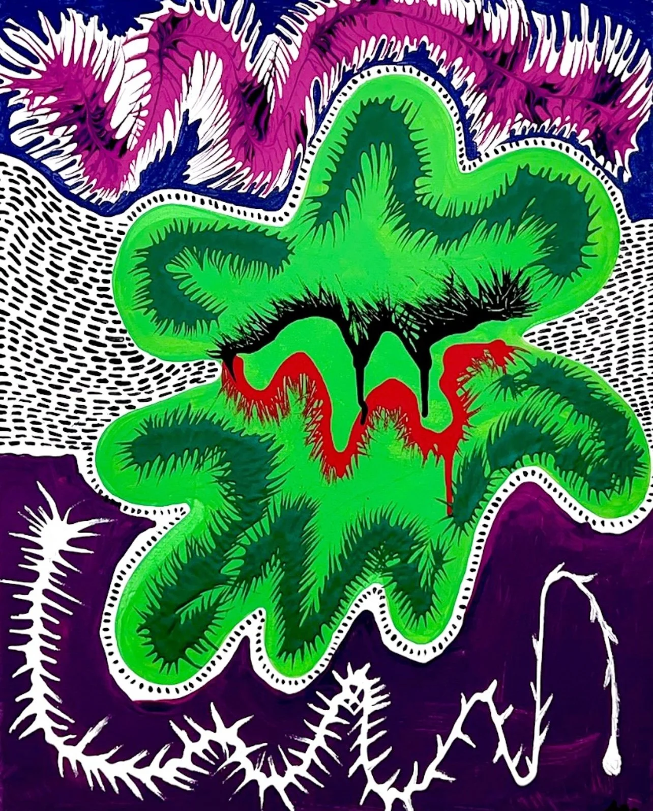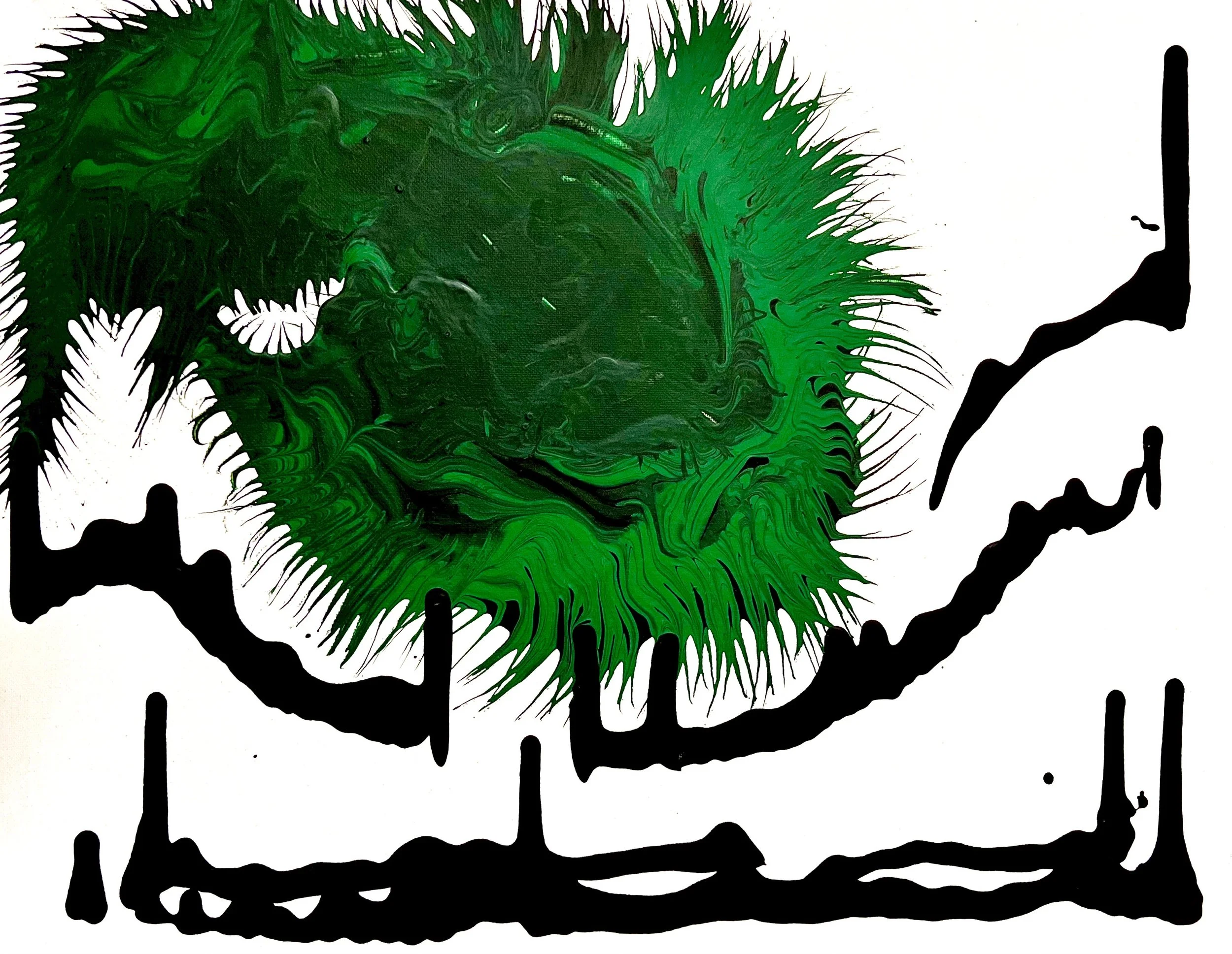 Pandemia is a series created in the midst of a global pandemic and the presence of death. The exploration of lines and shape are vessels for the expression of uncertainty and an attempt to make sense of heavy emotions and indescribable sadness. At the time of their creation, the artist was dealing with the hospitalizations of two family members, both of whom were severely ill with COVID-19 and desperately fighting for their lives and the chance to return home. “As a child of immigrants, having to interpret to my Spanish-speaking father that their mother’s (my grandmother) kidneys and internal organs are shutting down was a pain unlike no other.”